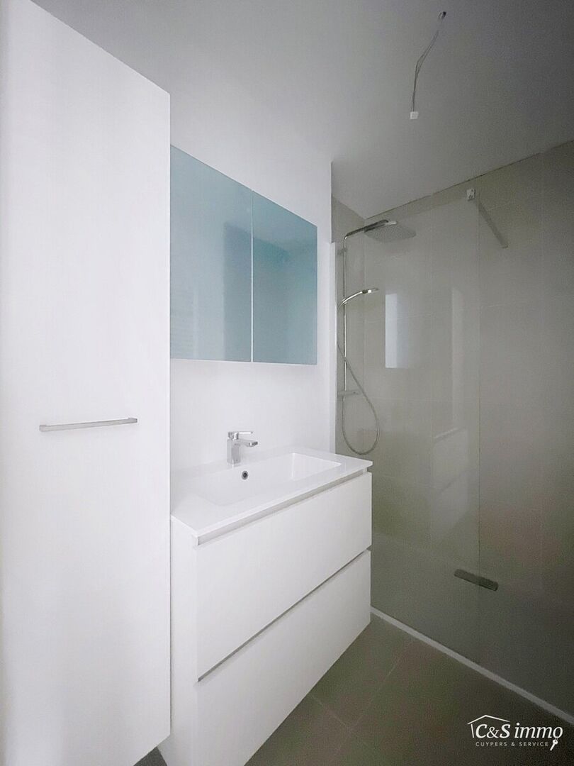 De badkamer is stijlvol ingericht met een inloopdouche met regendouche en een badkamermeubel. Verder beschikt het appartement over twee ruime slaapkamers (ca. 15 m² en 10 m²) en een aparte berging met aansluiting voor wasmachine.