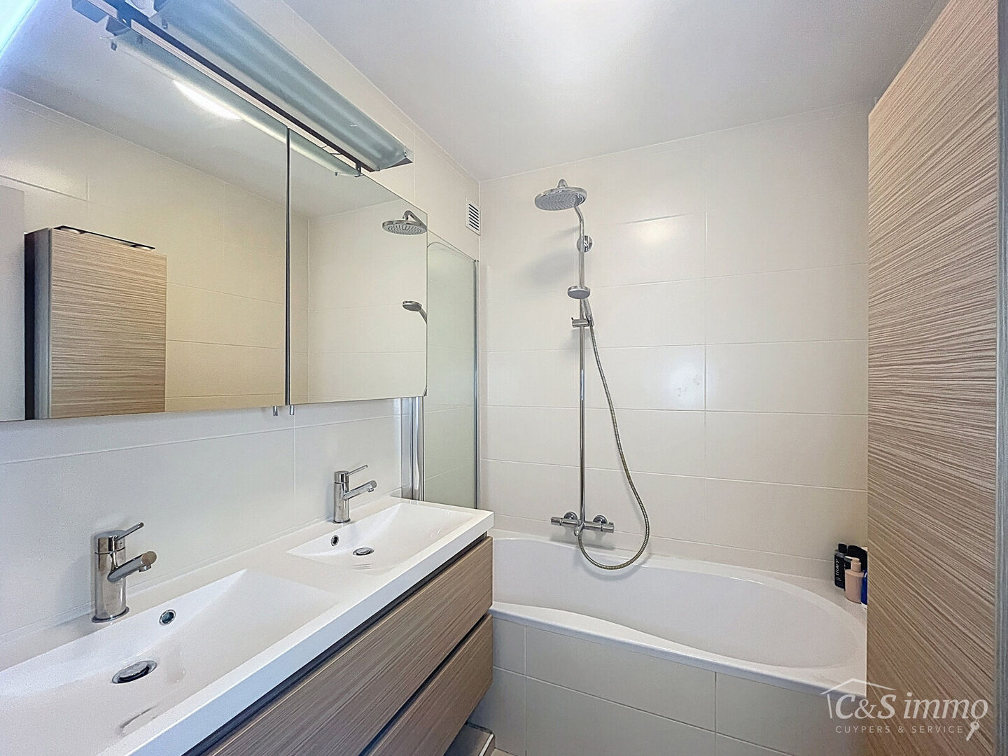 Dit ruime en goed onderhouden appartement met twee slaapkamers is gelegen op een centrale ligging nabij winkels, openbaar vervoer en vele uitvalswegen. Bij binnenkomst wordt u verwelkomd door een inkomhal met maatkast. De woon- en eetkamer, met een oppervlakte van circa 35m² op keramische tegelvloer. Luxueuze open keuken met composiet werkblad en eiland, met een oppervlakte van ongeveer 11m², is voorzien van een inductiekookplaat, spoelbak, koelkast met aparte vriezer, oven, micro, vaatwasmachine en dampkap. Een aangrenzende ruime berging herbergt aansluiting wasmachine. De twee slaapkamers (ca. 13 - 11m²) op tegelvloer zijn aan de achterzijde gelegen. Vanuit beide slaapkamers heeft u toegang tot het terras met een open uitzicht. De 2e slaapkamer is volledig ingericht met maatkasten. De verzorgde badkamer beschikt over een dubbele wastafel in meubel, spiegel en een ligbad met douche mogelijkheid. Op de nachthal een apart toilet met handenwasser. Achteraan het appartement is er een gezellig van ongeveer 4m². Elektriciteit conform, cv installatie privatief en vernieuwd in 2018. Veiligheidsdeur. Aankoop garagebox achter het gebouw 25 000euro. Het gebouw is goed geïsoleerd en beschikt over individuele meters.