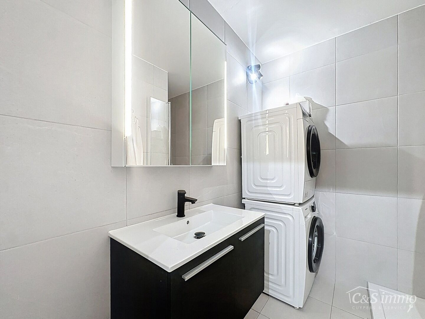 De recent gerenoveerde badkamer is uitgerust met een ligbad, lavabo en aansluitingen voor wasmachine en droogkast. Het appartement beschikt bovendien over een recent vernieuwde condensatieketel en een zeer gunstige EPC-score (A).