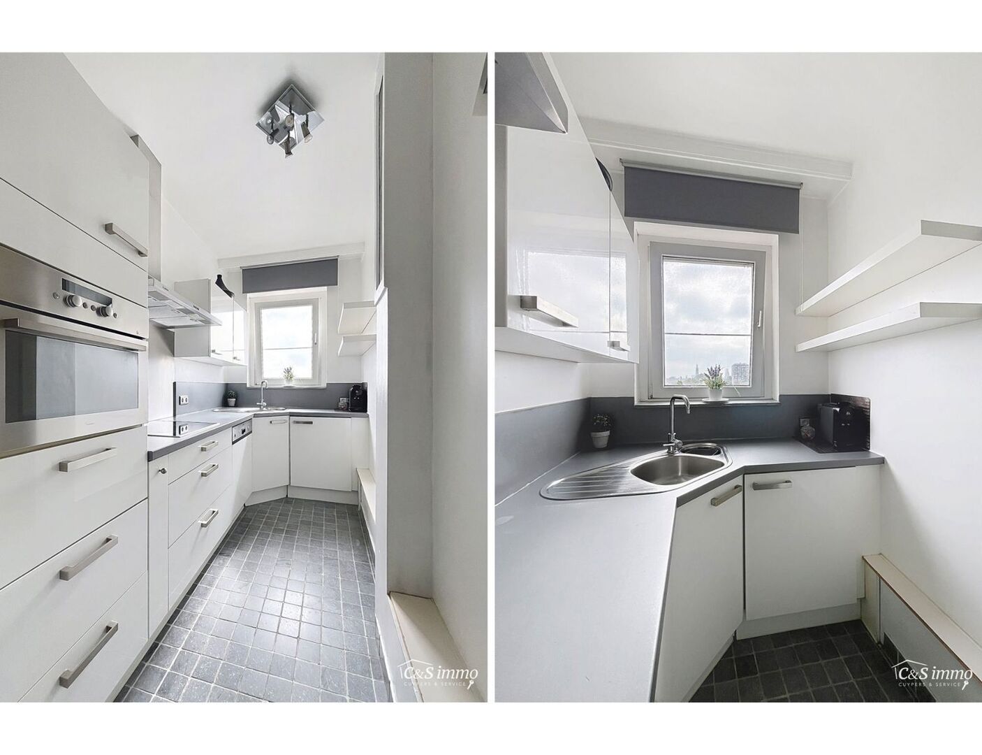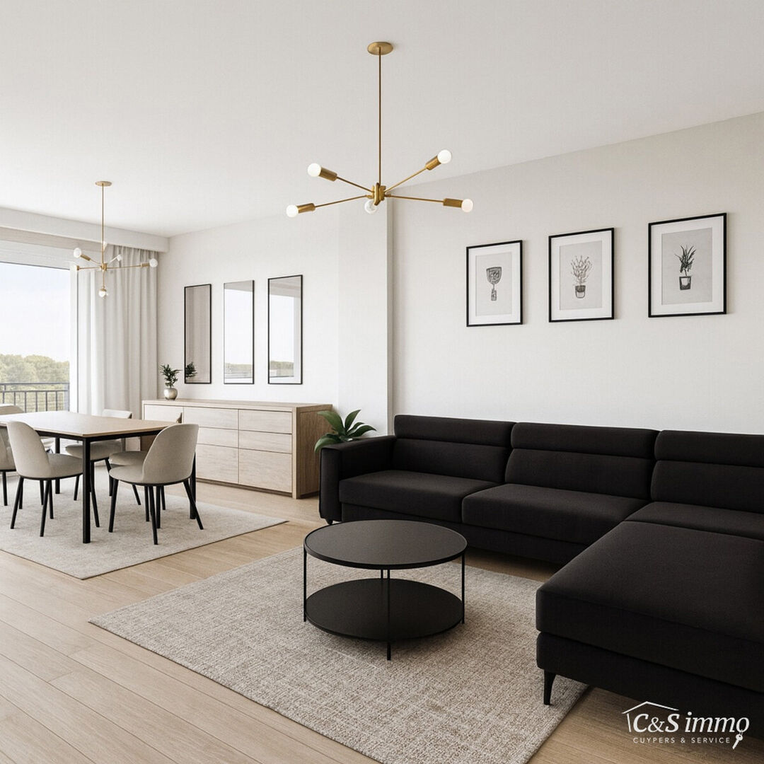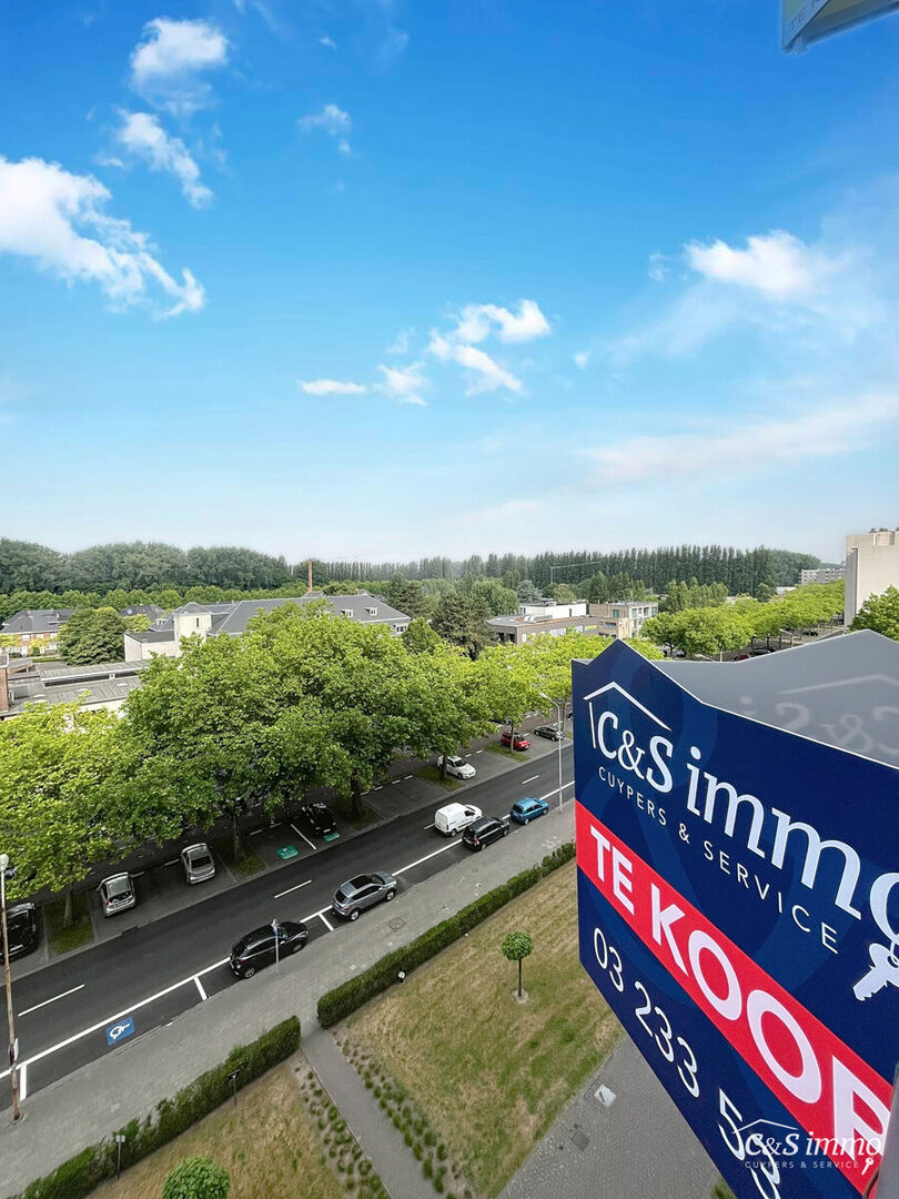 Lichtrijk appartement op de 6e verdieping met een aangenaam en open uitzicht. Bij het binnenkomen van dit appartement betreedt u de inkomhal (ca5 m²), uitgerust met praktische ingebouwde kasten. De woonkamer (ca. 28 m²) is voorzien van een onderhoudsvriendelijke tegelvloer en geniet veel natuurlijk licht dankzij de grote raampartijen, die toegang geven tot het zonnige terras (4 m²). Het terras is uitgerust met een dubbele bergkast en een vrolijke zonneluifel. Ingerichte keuken (ca.6 m²) met koelkast, vaatwasser, inductiekookplaat, dampkap, combi-oven en een aansluiting voor een wasmachine. De twee slaapkamers (ca.15 m² en 10 m²) zijn voorzien van automatische rolluiken. De badkamer (4 m²) is uitgerust met een wc, een keramisch lavabomeubel en een ruime bad/douchecombinatie.