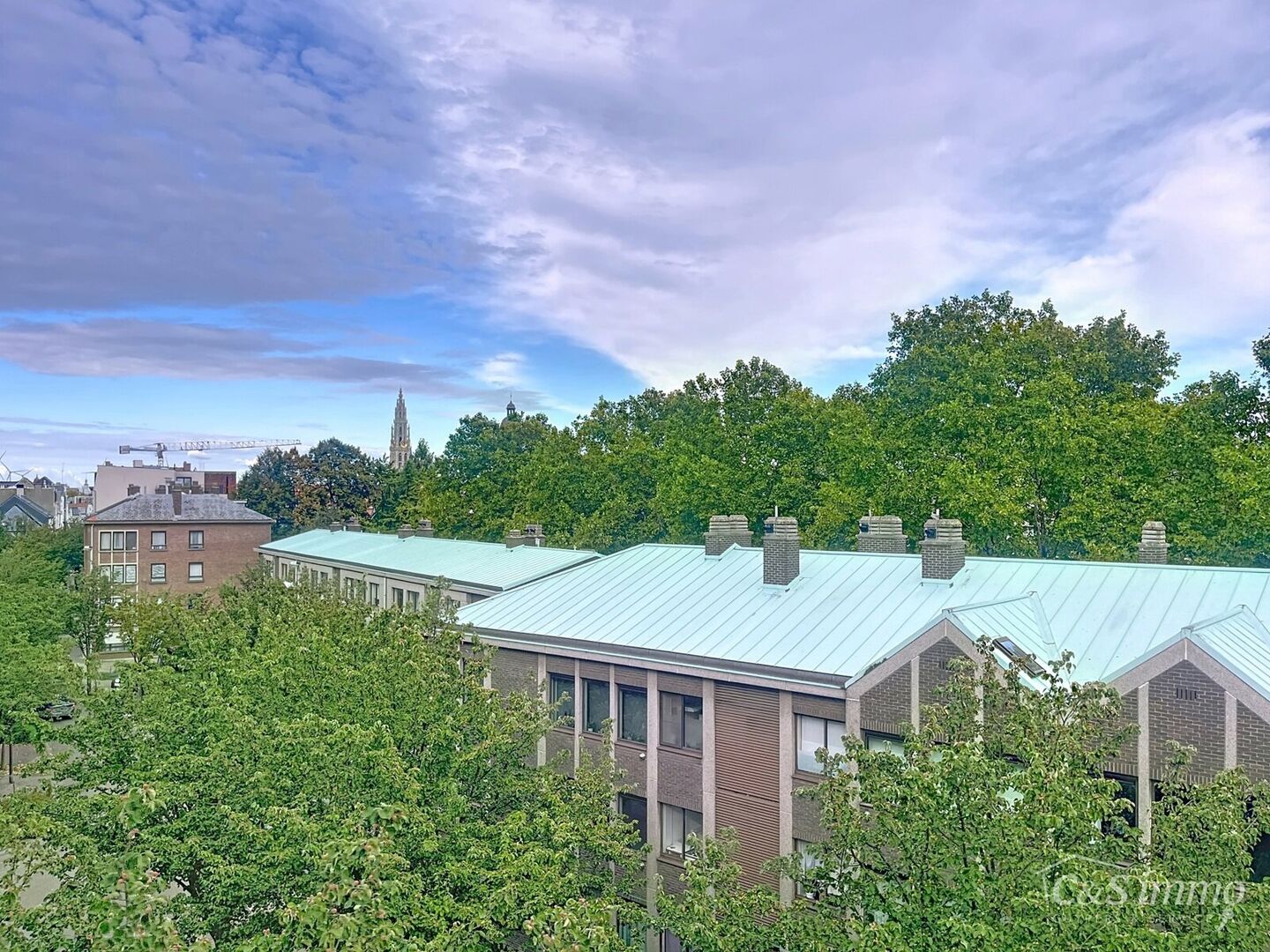 In één van de charmantste straatjes van de oude binnenstad vind je dit gerenoveerde appartement op de vierde verdieping van een kleinschalig gebouw. Je komt binnen via de inkomhal, waarna de lichte woonkamer (ca. 31 m²) meteen opvalt door het open zicht over Sint-Andries. De open, uitgeruste keuken beschikt over een koelkast, keramische kookplaat, dampkap en vaatwasser.