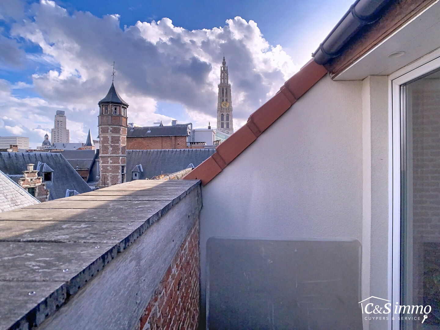 Aan de achterzijde geniet je van een gezellig terras met ochtend- en middagzon én een prachtig uitzicht op de Kathedraal en de Boerentoren – twee iconische landmarks van Antwerpen.
