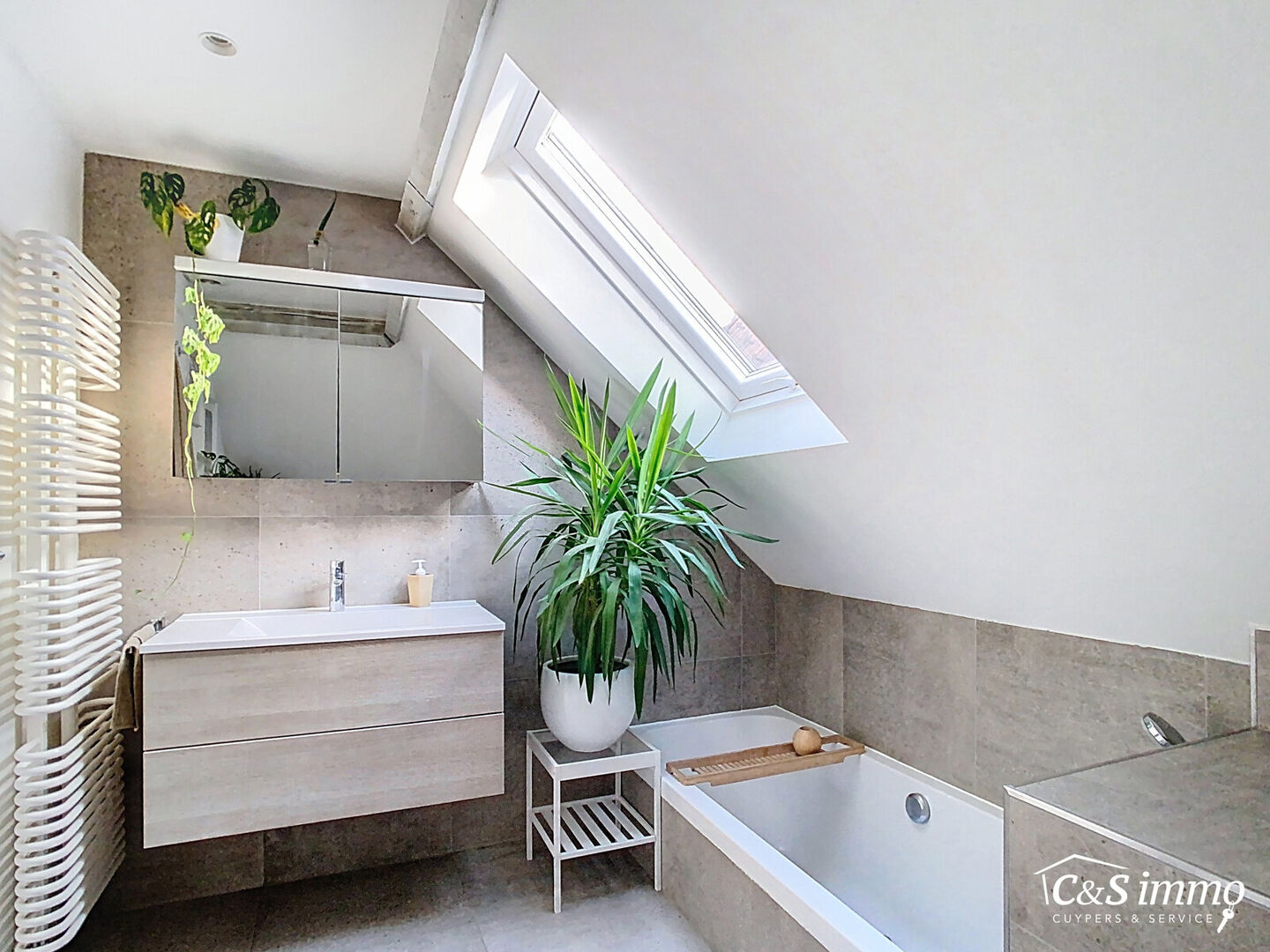 De slaapkamer is uitgerust met een ingebouwde kleerkast. De badkamer beschikt over een wastafel, ligbad en toilet. Dankzij het open livingconcept voelt dit appartement aan als een warme stadsloft.