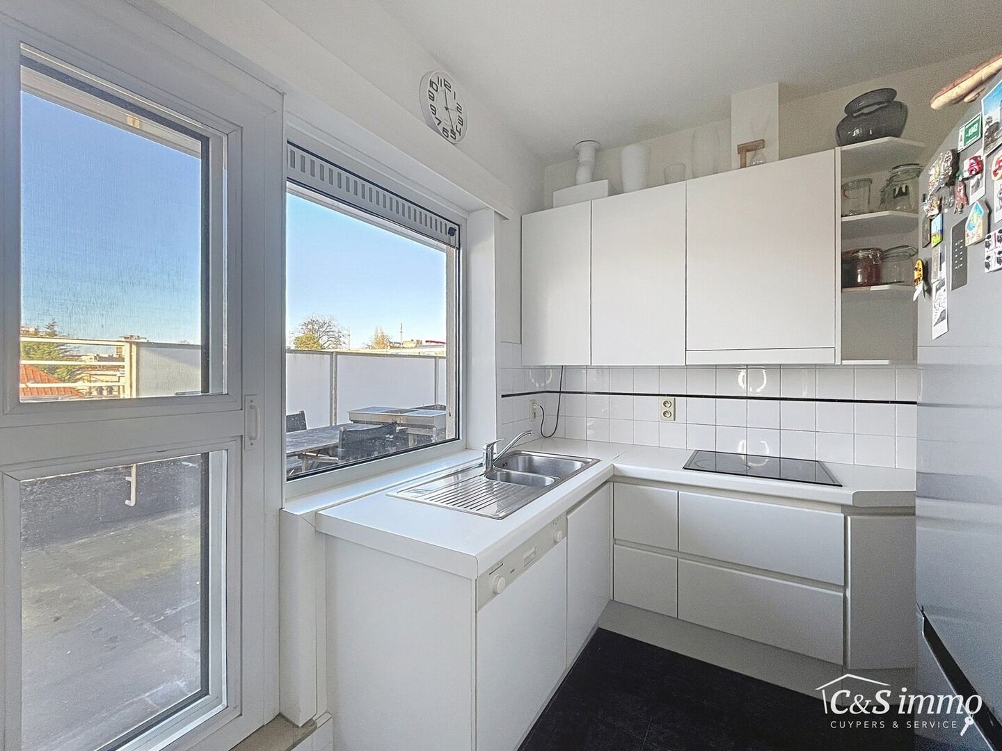 Gelegen op de derde verdieping van een karaktervol vintagegebouw bevindt zich dit aangename appartement van ca. 107 m² met een ruim en zonnig terras van ca. 18 m², in de gegeerde Expowijk. Via de inkomhal met afzonderlijk toilet en praktische berging bereikt u de lichtrijke leefruimte (ca. 44 m²) op parketvloer, toegankelijk via een stijlvolle dubbele deur. De deels uitgeruste keuken geeft rechtstreeks uit op het nog aan te leggen, westgericht terras. Het appartement beschikt over twee slaapkamers (ca. 16 m² en 11 m²), waarvan de master bedroom is uitgerust met ingemaakte kasten. De badkamer is afgewerkt in mozaïek en voorzien van een ligbad, aparte douche, dubbel lavabomeubel en aansluiting voor wasmachine. Verder is het appartement uitgerust met een recente boiler en dubbele beglazing, en beschikt het over een privatieve kelderberging. In het gebouw werden recent zowel het dak als de gevel vernieuwd. de lift is conform de huidige normen.