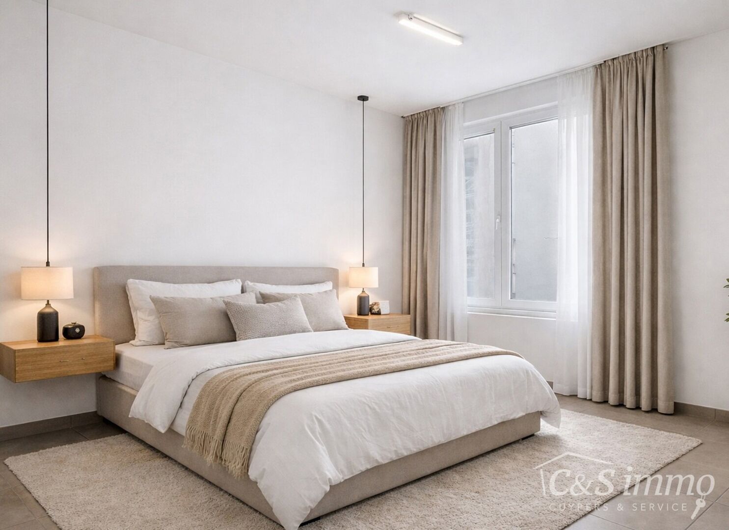 De slaapkamer (ca. 13 m²) biedt een rustige en comfortabele slaapomgeving. De recent vernieuwde badkamer is modern afgewerkt in stijlvolle mortexlook en beschikt over een ligbad met douchefunctie, lavabo en toilet.