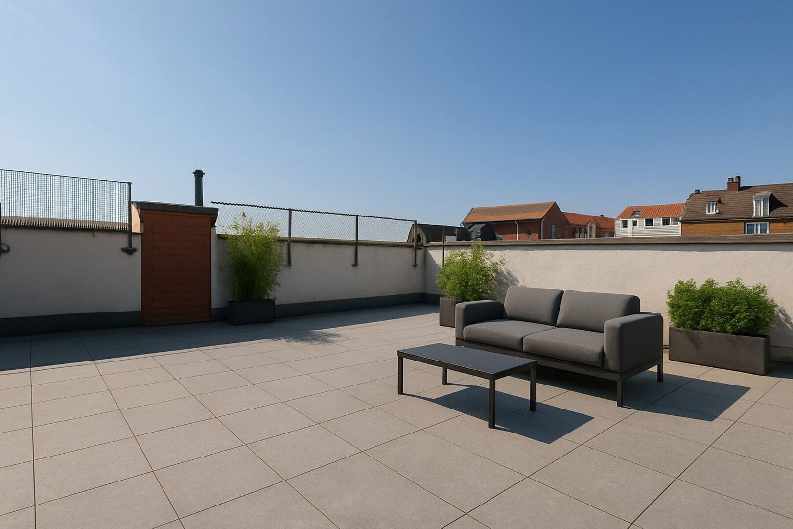 Een absolute meerwaarde is het ruime gemeenschappelijke dakterras van maar liefst 70 m². Een heerlijke plek om te ontspannen in de zon en te genieten van het uitzicht op de Sint-Antonius van Padua-kerk. Het gebouw is bovendien uitgerust met een lift.