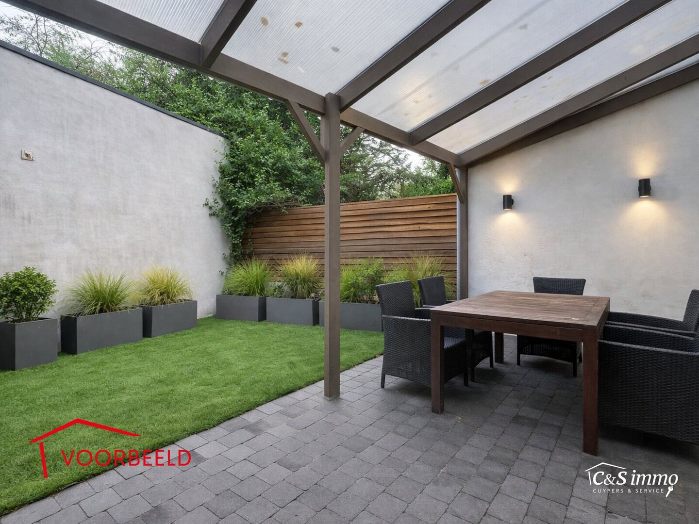 De stadstuin met overdekt terras is een ware oase van rust waar u in alle privacy kan ontspannen.