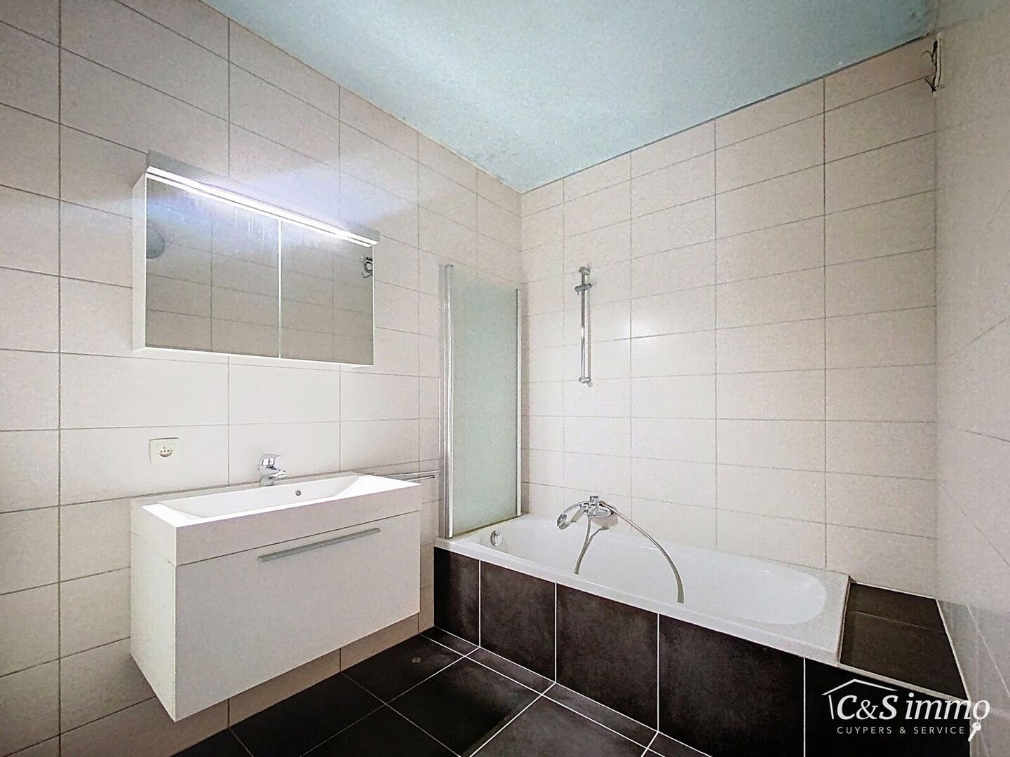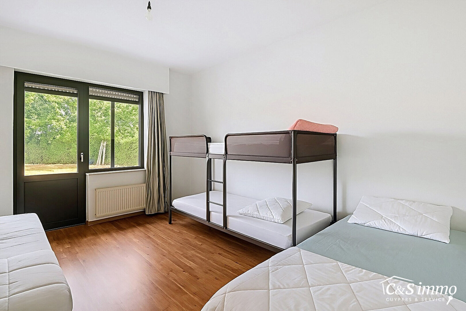 Aan de achterzijde van het appartement vinden we aansluitend 2 slaapkamers (ca 10&16m² waarvan één toegang tot de ruime tuin met terras )en badkamer met bad/douchecombinatie. Tenslotte is er een aparte bergruimte in de kelder met aparte digitale meters.