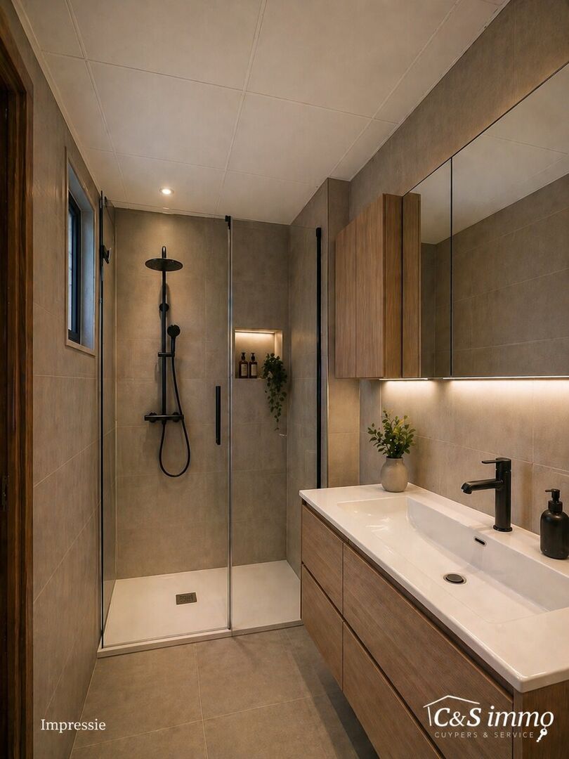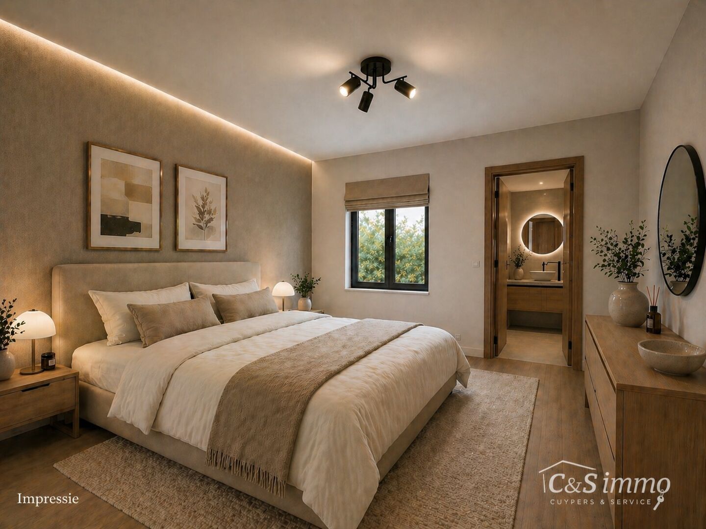 Op deze verdieping vindt u tevens een ruime slaapkamer (ca. 12 m²) en een compacte badkamer met lavabo, douche en toilet.