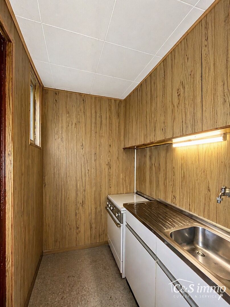 Via de inkomhal bereikt u de gezellige leefruimte met zitgedeelte en eetkamer. Aansluitend bevindt zich de gedeeltelijk geïnstalleerde keuken, uitgerust met een koelkast met vriesvak, oven en elektrische kookplaat met dampkap. Vanuit de keuken heeft u toegang tot het overdekte terras en via de trap tot de tuin met achterliggend werkhuisje.