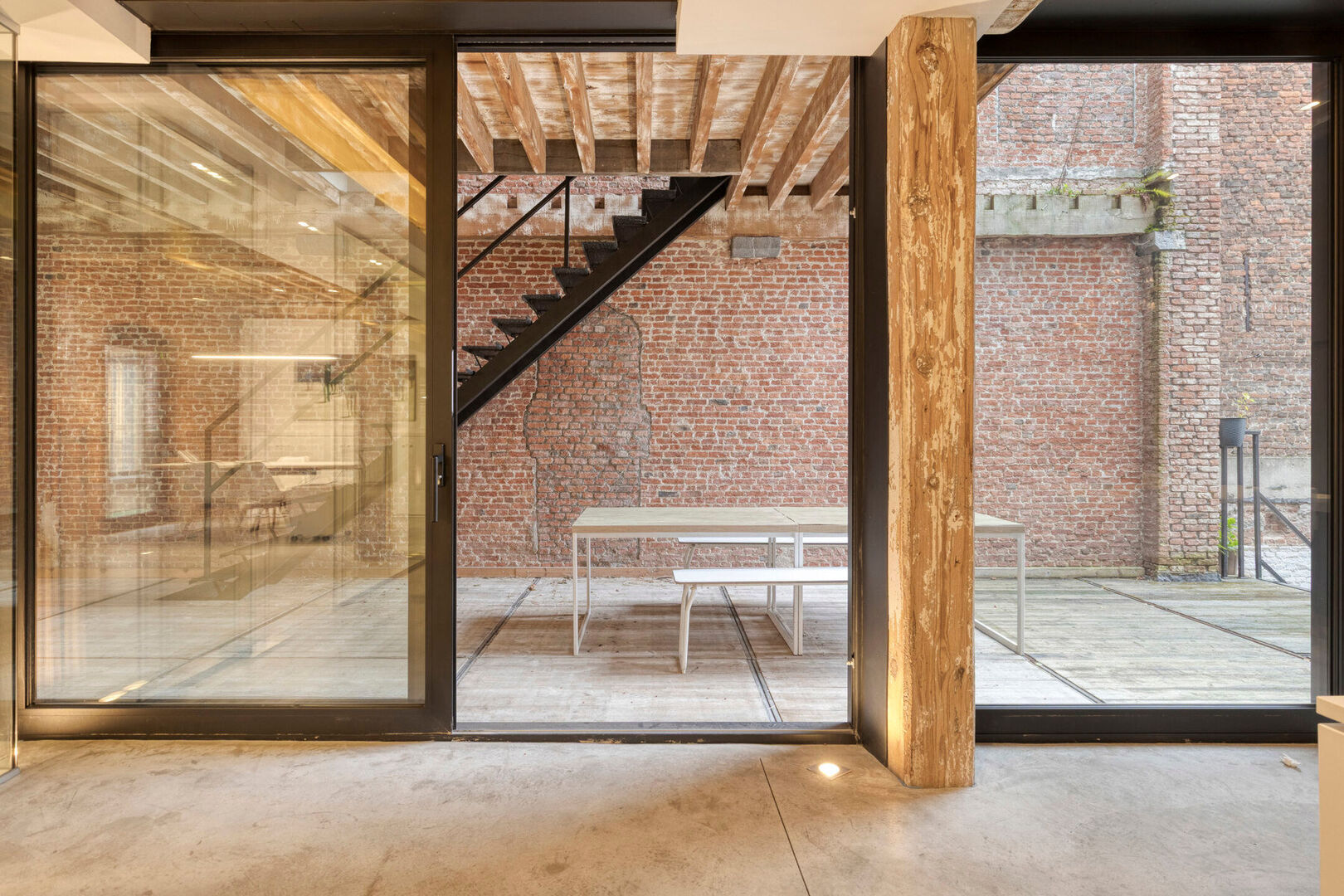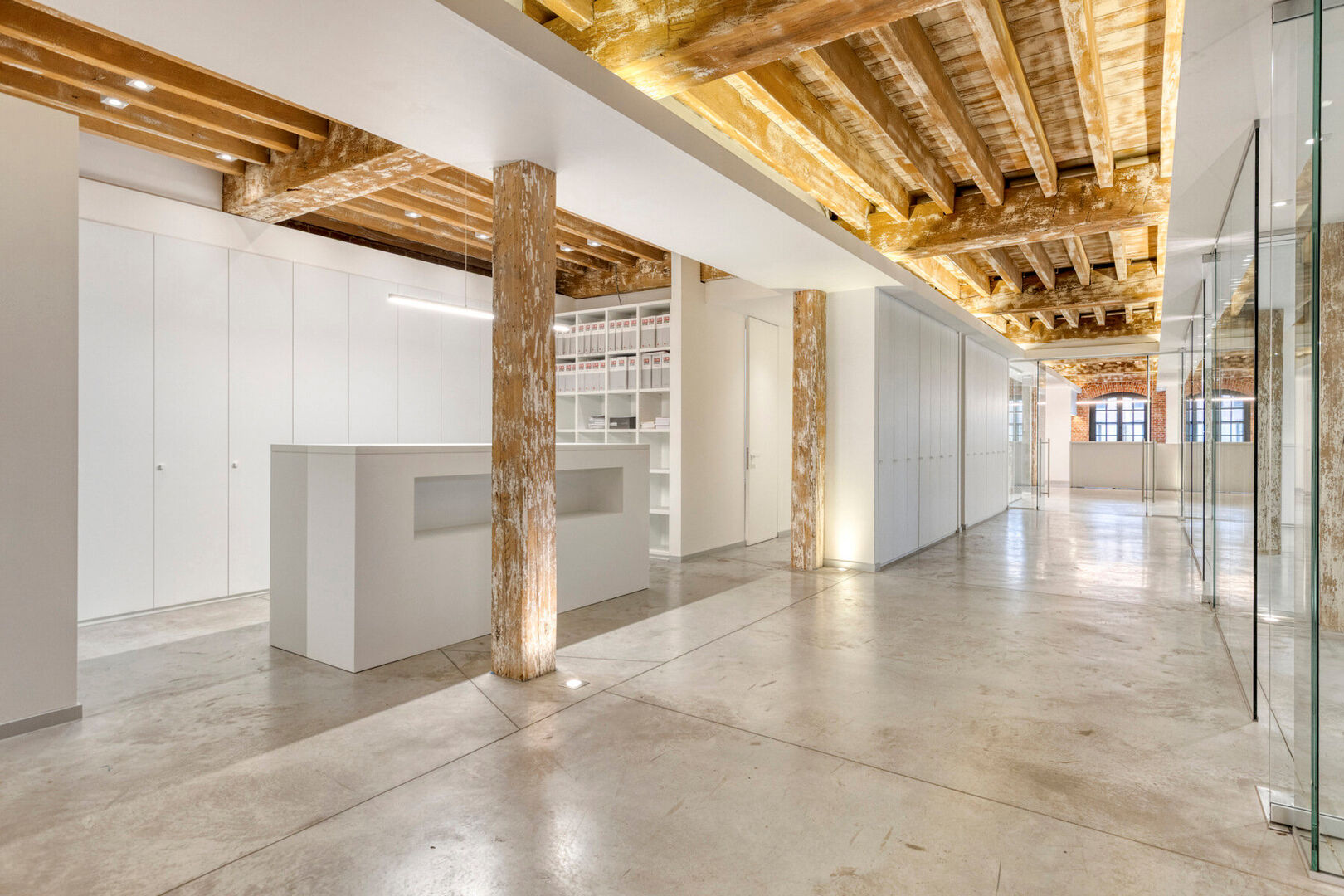 De vele raampartijen zorgen voor lichte kantoorruimtes. De bakstenenmuren en originele houtenroostering zorgen voor esthetiek.