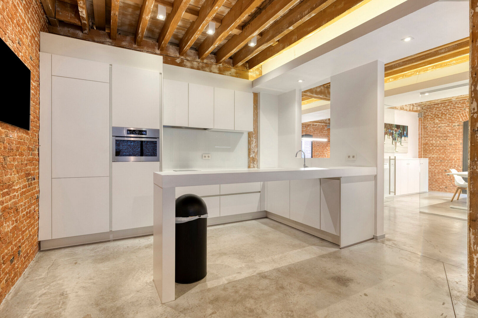 In een monumentaal gebouw is dit luxueus kantoor/praktijkruimte (ca.375m²) gelegen op de 1e verdieping. De afwerking is tot in details afgewerkt met het nodige comfort. Een combinatie van gepolieerde betonvloer, glas en authentieke houten balkenstructuren creëren een zeer karaktervol, industrieel kantoor. Het kantoor is gelegen op de 1e verdieping. Lift voorzien.