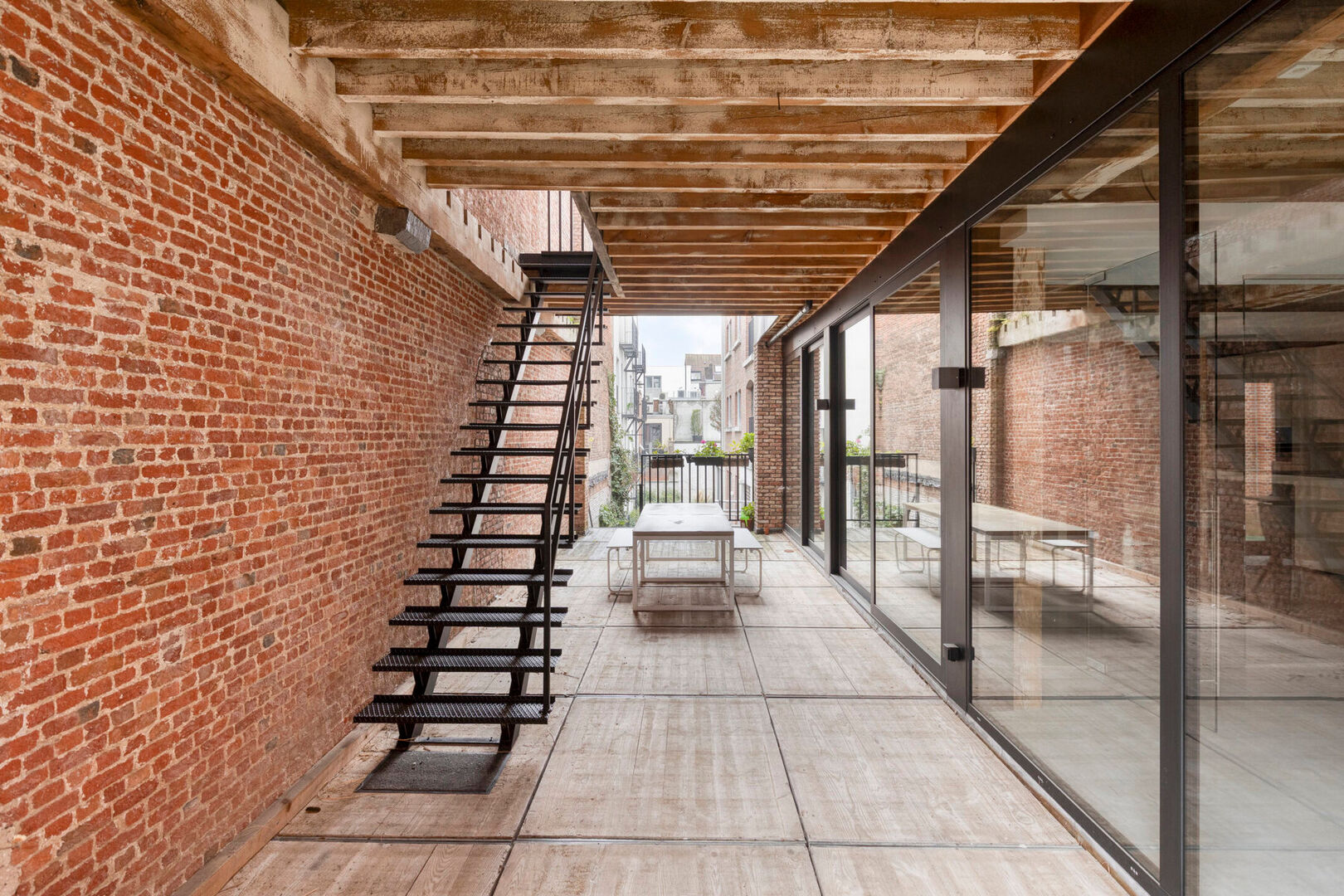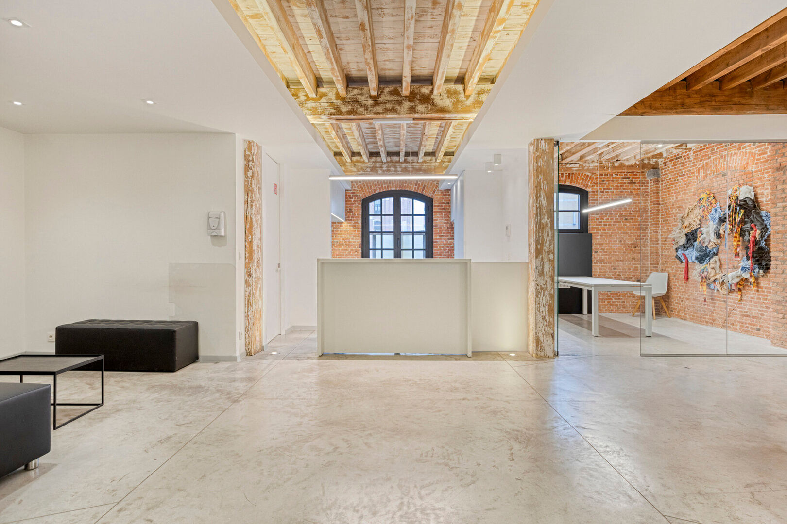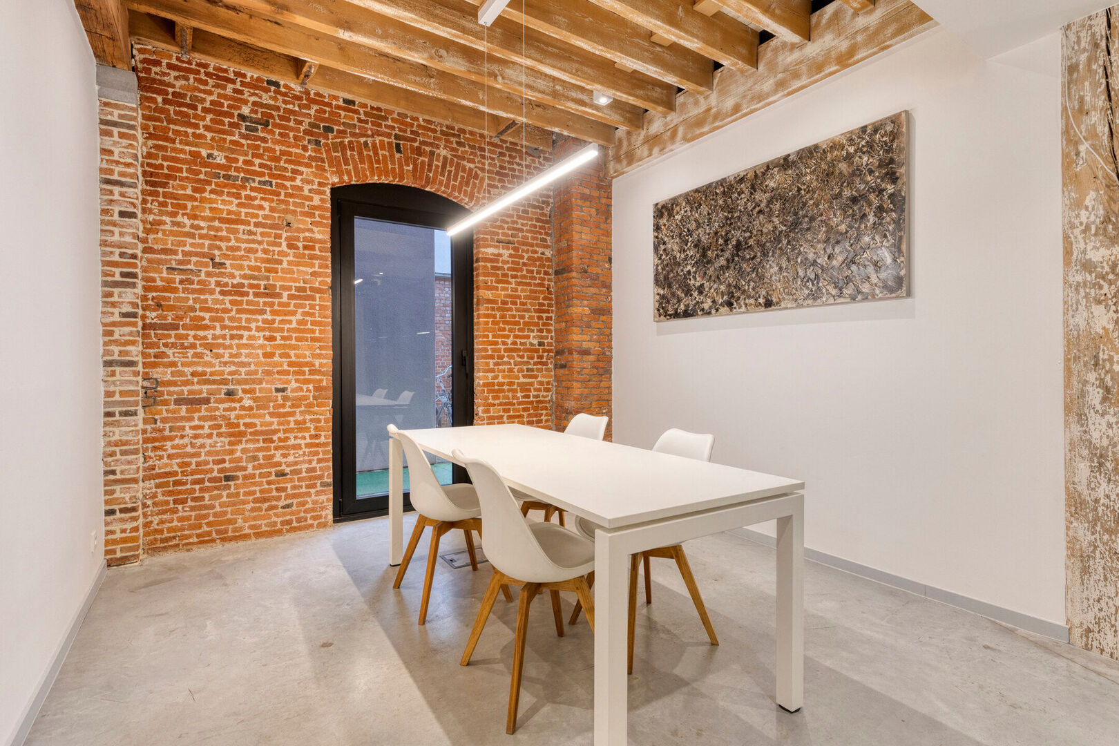 Dankzij de royale raampartijen genieten alle kantoren van een overvloed aan natuurlijk licht. De combinatie van bakstenen muren en originele houten roosteringen geeft de ruimtes een warme en esthetische uitstraling.